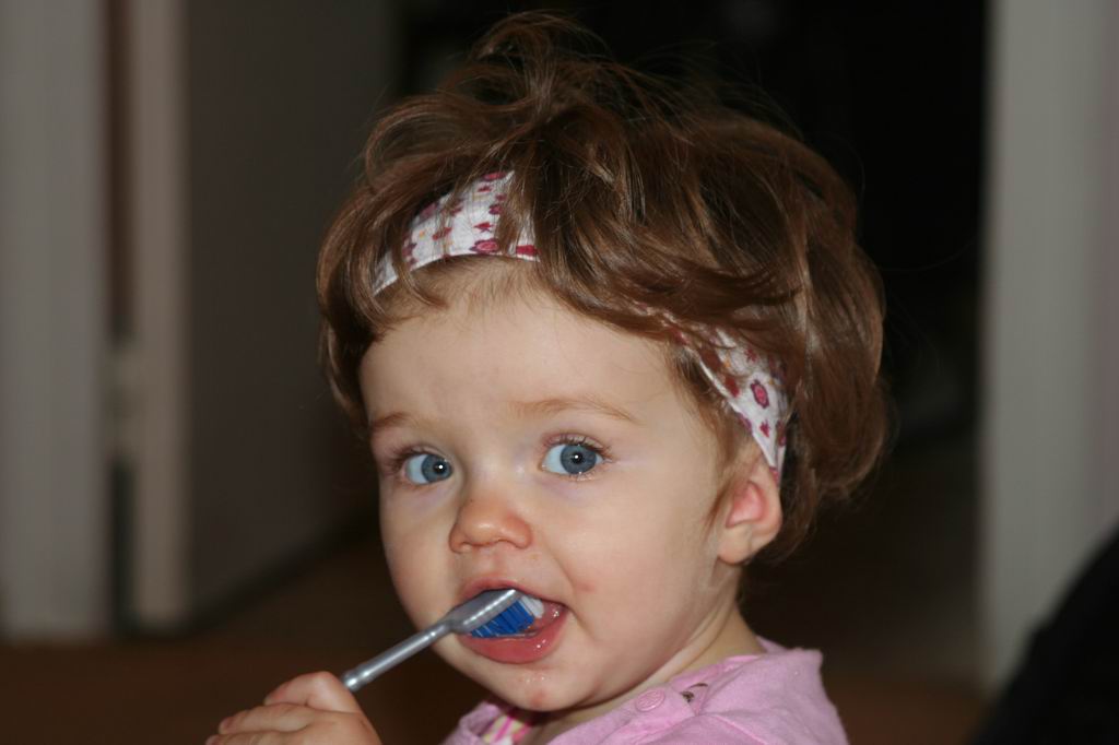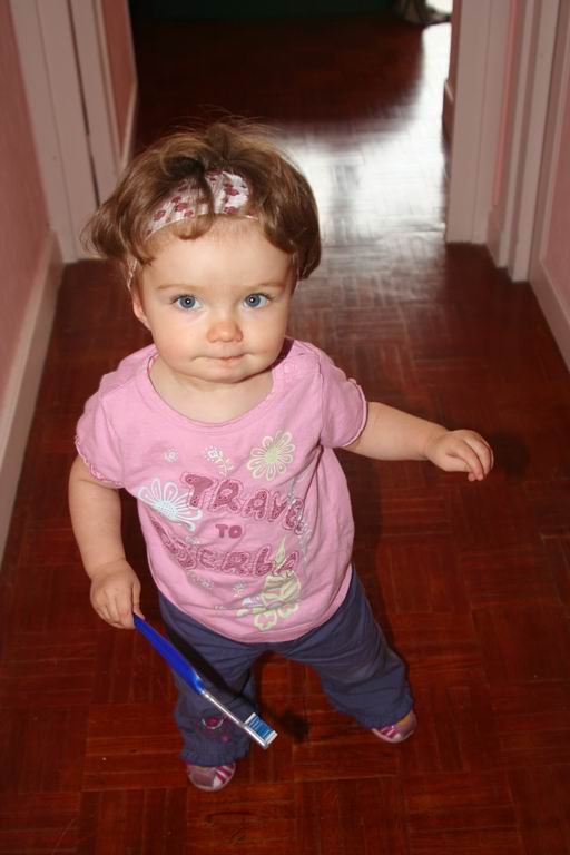 Question dents, toujours au même point depuis des semaines et des semaines. Mais ce n'est pas grave, en attendant elle apprend à laver ses 2 seules petites dents.