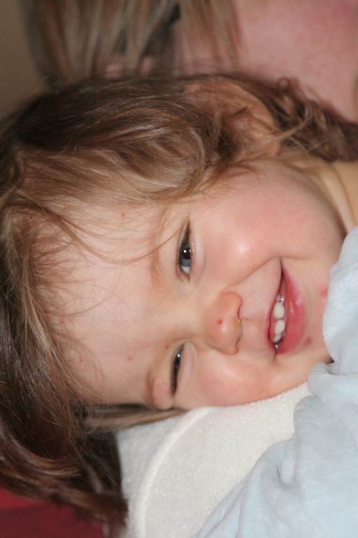 Tout s'est très bien passé pour Clarysse, si ce n'est qu'elle a développé une petite rougeole. Les plus grands soucis ont été pour les grands parents qui sont venus la garder.
