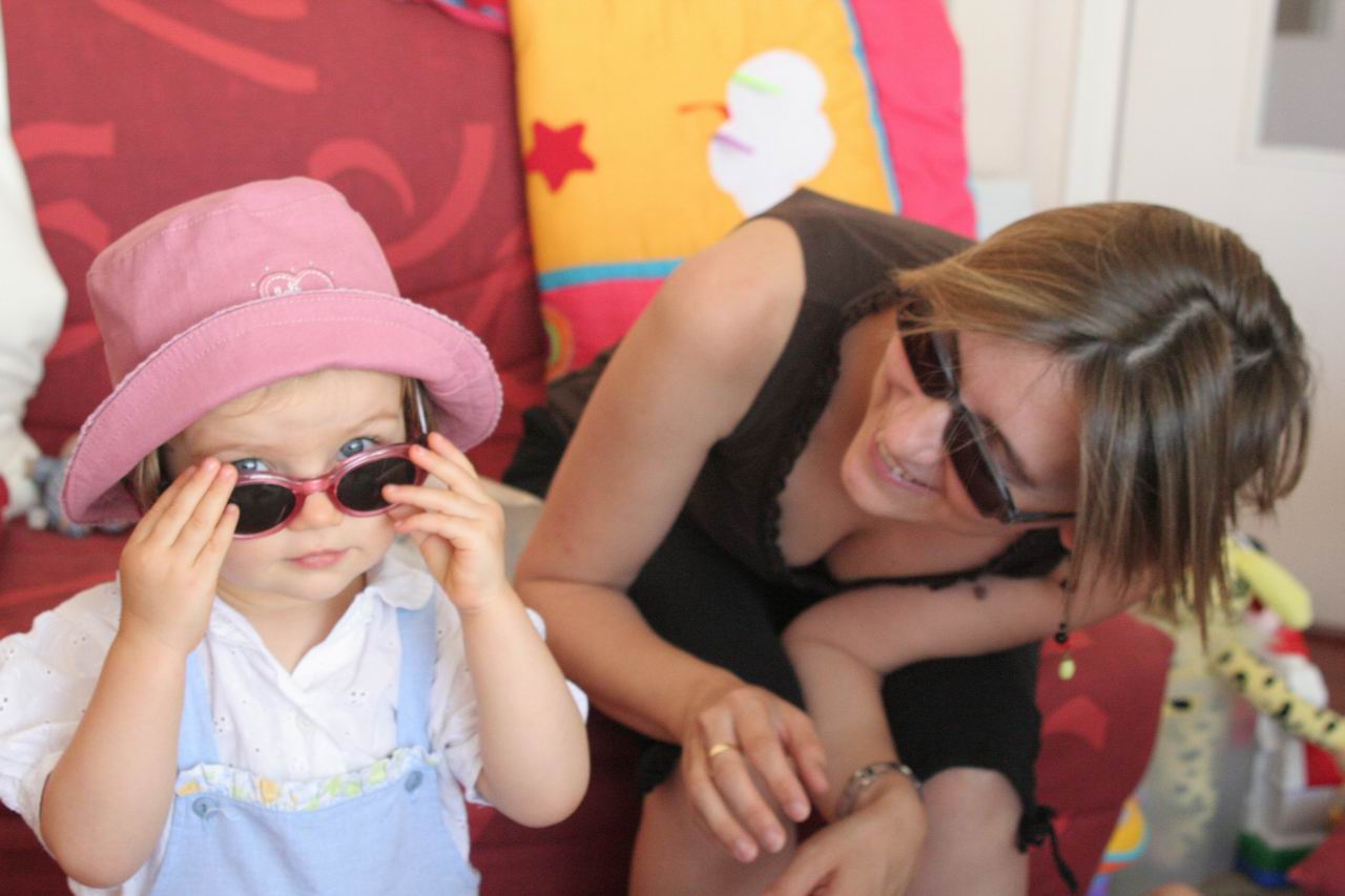 Ca y est, la star !!!! Avec le soleil, on a investit dans une paire de lunette de soleil, en espérant qu'elle les gardera sur le bout du nez.