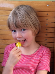 Bien sur Mamie ne peut s'empècher d'acheter des bonbons pour sa petite fille.